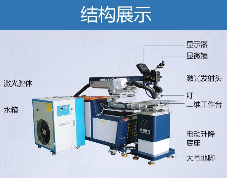 • 通發(fā)激光一體式模具激光焊機TFL-400YT是一款多種功能融合一體的新型模具激光焊接機,針對特大型塑料模具激光焊、中型注塑模具激光燒焊、小型塑膠模具激光補焊、壓鑄模激光補焊
